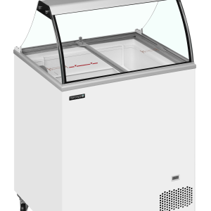 De IC-SO-serie schepijsvriezers biedt uitstekende kwaliteit tegen een concurrerende prijs. Het model is voorzien van glasschuifdeksels voor eenvoudige toegang tot het consumptieijs. Uitstekende isolatie en voorzien van een glazen gebogen frontruit. Optioneel te voorzien van bestickering. De vriezer is ontworpen voor manden waarin bovenin plastic bakken van 5 l passen en onderin ruimte is voor opslag.