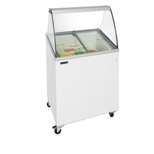 De IC-SO-serie schepijsvriezers biedt uitstekende kwaliteit tegen een concurrerende prijs. Het model heeft schuifdeksels die gemakkelijk toegang geven tot het ijs dat geserveerd moet worden en die het apparaat helpen isoleren wanneer het niet in gebruik is. Het heeft een glazen bedieningstop en is ideaal voor branding die de aandacht moet vestigen op het apparaat en zijn koude inhoud. De vriezer is ontworpen voor manden waarin bovenin plastic bakken van 5 l passen en onderin ruimte is voor opslag.