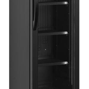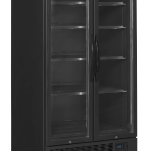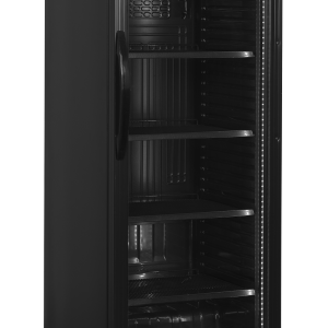 De FS BLACK-serie zwarte displaykoelers met 2 deuren biedt een uitstekende ontwerpkwaliteit tegen een concurrerende prijs. Het heeft een eigentijdse uitstraling met een zwart interieur en een zwarte buitenkant met zwarte glazen deuren met aluminium frame. De planken zijn verstelbaar, waardoor de FS-serie een flexibele oplossing is. Dit zorgt voor een geweldige productpresentatie in combinatie met een krachtig geventileerd koelsysteem dat wordt geregeld door een elektronische thermostaat. Veel modellen zijn ook verkrijgbaar met kap (FSC-serie).