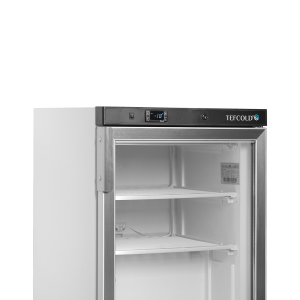 De UF-VG-serie displayvriezers is de geventileerde versie van onze witte vriezers met glazen deur. Hij is verkrijgbaar in verschillende maten. Het geventileerd koelsysteem zorgt voor een gelijkmatige temperatuur in de hele kast. De temperatuur kan worden ingesteld op een gebruiksvriendelijk digitaal thermostaatdisplay.
