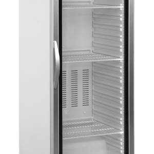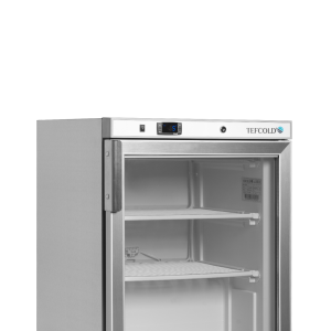 De UF-SG-serie vriezers is de roestvast stalen versie van onze UF-kasten met glazen deur. Deze displayvriezers bieden hoge kwaliteit en betrouwbaarheid tegen een concurrerende prijs. Ze zijn verkrijgbaar in verschillende maten en hebben allemaal een strak design in roestvast staal. De standaard vrieskast is voorzien van vaste vriesplateaus, die zorgen voor een gelijkmatige temperatuur in de hele kast. Stel de temperatuur in op het gebruiksvriendelijke digitale thermostaatdisplay.