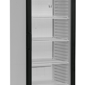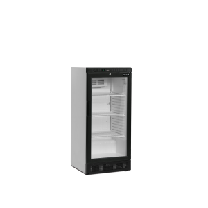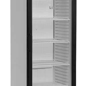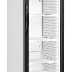De SCU-serie flessenkoelers biedt veel display- en opslagruimte. Leverbaar in verschillende maten, met of zonder kap. Het is een witte kast met een zwarte omkeerbare glazen deur met aluminium frame, verstelbare planken en ledverlichting binnenin voor een optimale productpresentatie. Een koelsysteem met ventilator zorgt voor een gelijkmatige koeling van de hele kast.