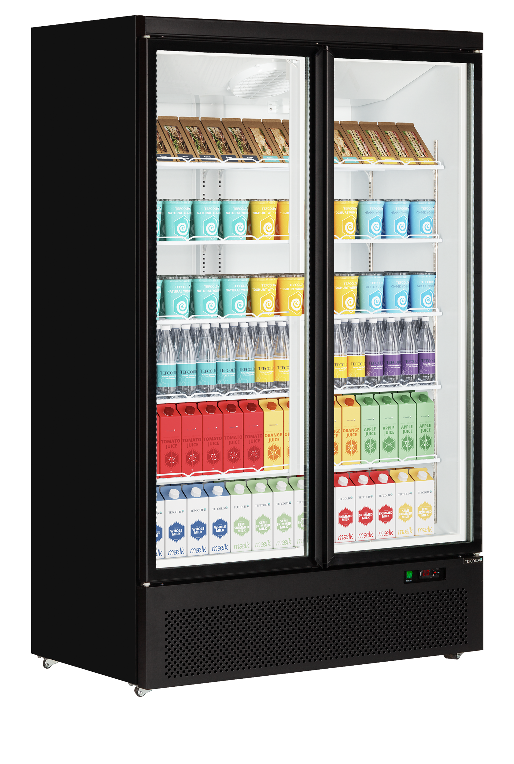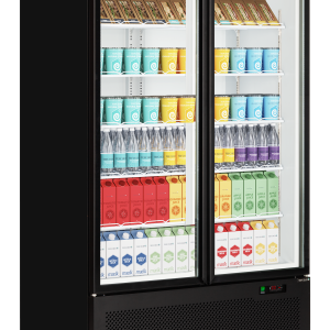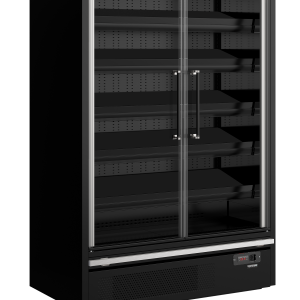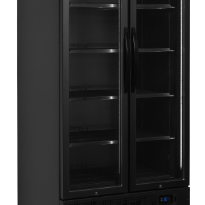 De FS BLACK-serie zwarte displaykoelers met 2 deuren biedt een uitstekende ontwerpkwaliteit tegen een concurrerende prijs. Het heeft een eigentijdse uitstraling met een zwart interieur en een zwarte buitenkant met zwarte glazen deuren met aluminium frame. De planken zijn verstelbaar, waardoor de FS-serie een flexibele oplossing is. Dit zorgt voor een geweldige productpresentatie in combinatie met een krachtig geventileerd koelsysteem dat wordt geregeld door een elektronische thermostaat. Veel modellen zijn ook verkrijgbaar met kap (FSC-serie).