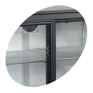 De DB-serie backbars wordt geleverd met 1, 2 of 3 deuren met dubbel gehard glas. Kies tussen schuifdeuren of draaideuren. De backbar heeft een zwarte buitenzijde, een stucco aluminium interieur en wit geplastificeerde draadplanken voor eenvoudig onderhoud. Met geventileerde koeling, eenvoudig te regelen met een elektronische thermostaat. Ideaal voor drukke baromgevingen.