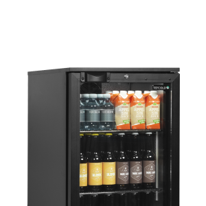 De BC serie flessenkoelers is leverbaar in twee maten en biedt geweldige zichtbaarheid van het product. Hij heeft een gebogen omkeerbare glazen deur met een geïntegreerde handgreep. De koelkast wordt geleverd met verstelbare draadplanken, zodat u het interieur gemakkelijk kunt aanpassen aan uw specifieke behoeften. Ventilatorgestuurde koeling zorgt voor een gelijkmatige temperatuur in de kast.