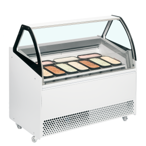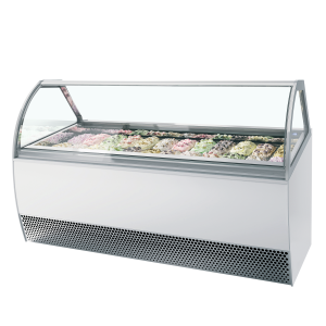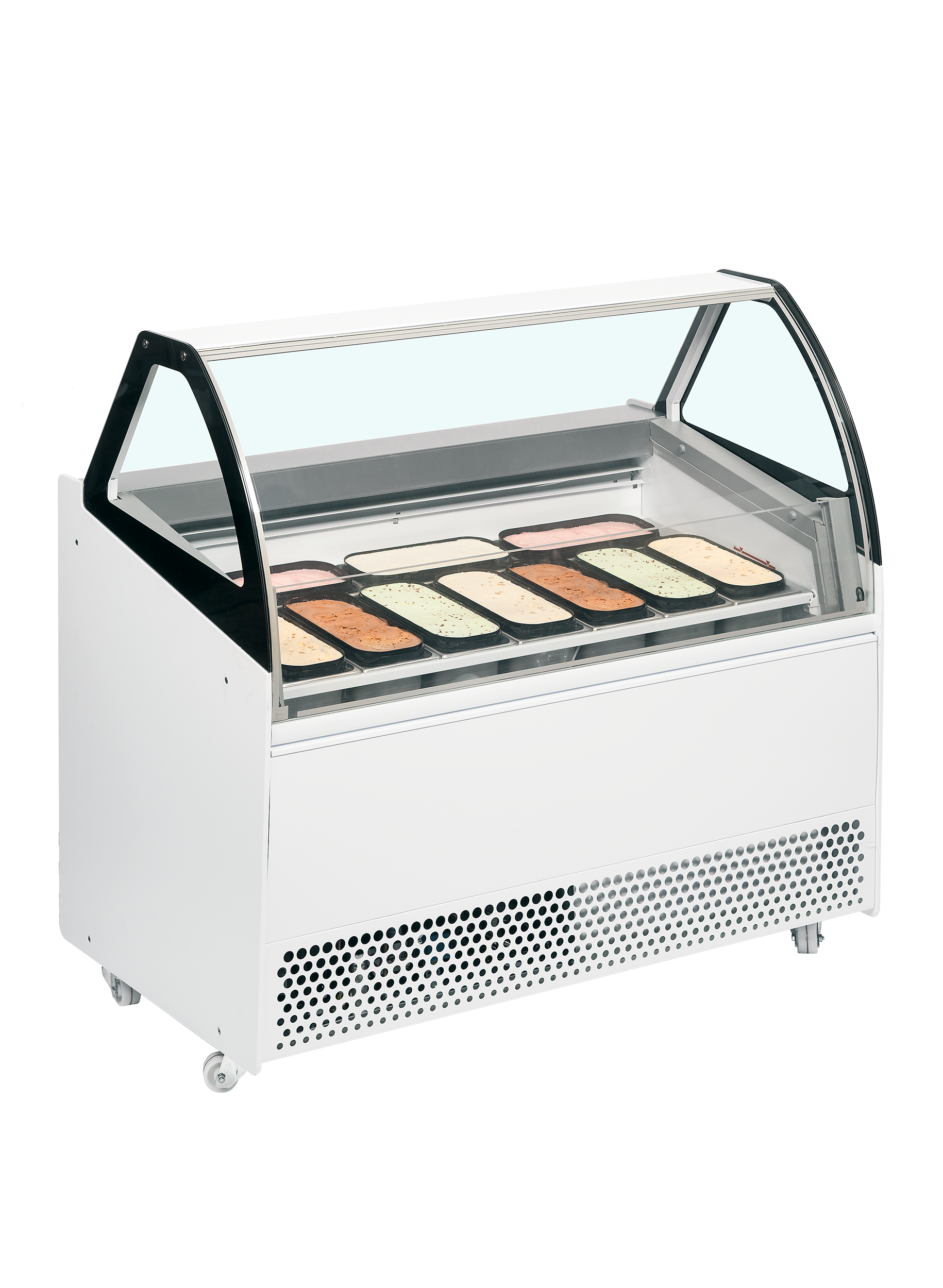 De Isabella-serie is een ruime schepijskast met optie voor 10 of 13 bakken. Het gebogen glasontwerp zorgt voor een oogstrelend plaatje dat uw klanten zeker zal bekoren en het serveerplateau erachter helpt bij een snelle service. Met de ingebouwde gekoelde onderopslag kunt u, als het druk is, de vitrine gemakkelijk aanvullen met vers ijs zonder het ijs uit de kast te halen. Bovendien is de kast voorzien van zwenkwieltjes voor eenvoudige manoeuvreerbaarheid en een interne LED-lamp zodat uw gelato of ijs optimaal wordt gepresenteerd.