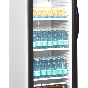 De FSC-serie flessenkoelers met 1 deur biedt een uitstekende ontwerpkwaliteit tegen een concurrerende prijs. De kast is wit met een grijze glazen deur met aluminium frame. Ideaal voor branding en de verlichte kap bovenaan trekt zeker de aandacht van de klanten. Dit zorgt voor een geweldige productpresentatie in combinatie met een krachtig door ventilator ondersteund koelsysteem, en de verstelbare planken zorgen voor extra flexibiliteit. Veel modellen zijn ook verkrijgbaar zonder kap (FS-serie).