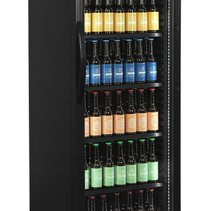 De SCU-serie flessenkoelers biedt veel display- en opslagruimte. Leverbaar in verschillende maten, met of zonder kap. Het is een witte kast met een zwarte omkeerbare glazen deur met aluminium frame, verstelbare planken en ledverlichting binnenin voor een optimale productpresentatie. Een koelsysteem met ventilator zorgt voor een gelijkmatige koeling van de hele kast.