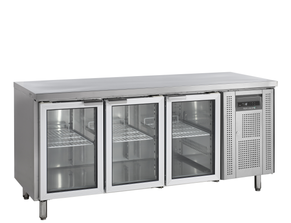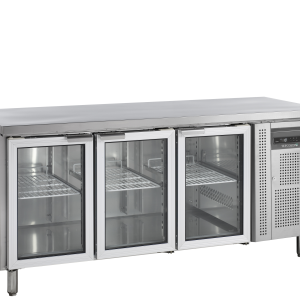 De CK-serie toonbankkoelers van roestvast staal SS304 is gemaakt voor professionele keukens en heeft daarom GN1/1-afmetingen. De toonbanken zijn verkrijgbaar in verschillende maten en u kunt kiezen uit massieve deuren, glazen deuren of lades. Bovendien hebt u de keuze tussen modellen met een afneembaar tafelblad met of zonder achterwand. Ze hebben allemaal geventileerde koeling voor een gelijkmatige en constante temperatuur.