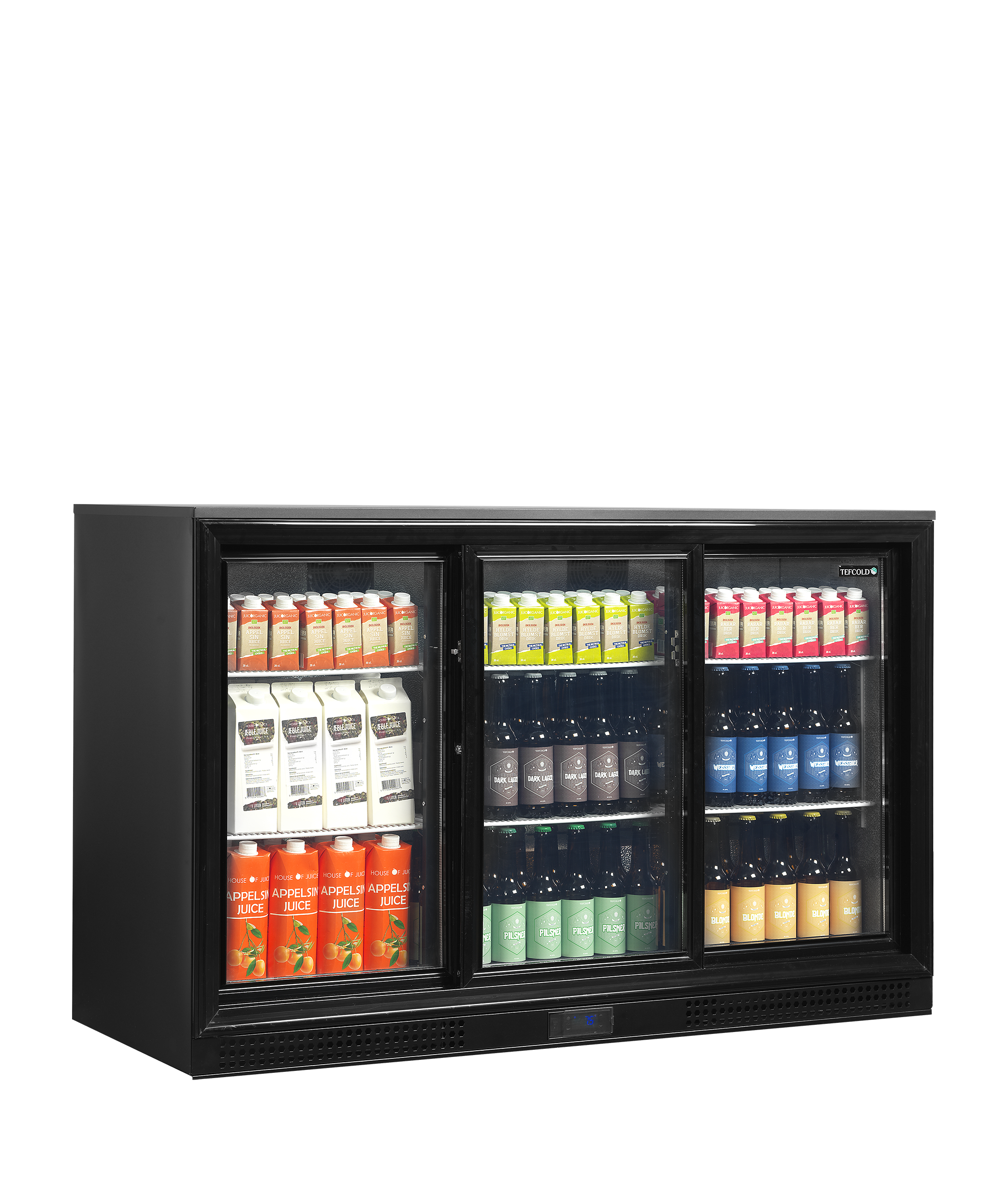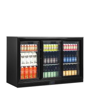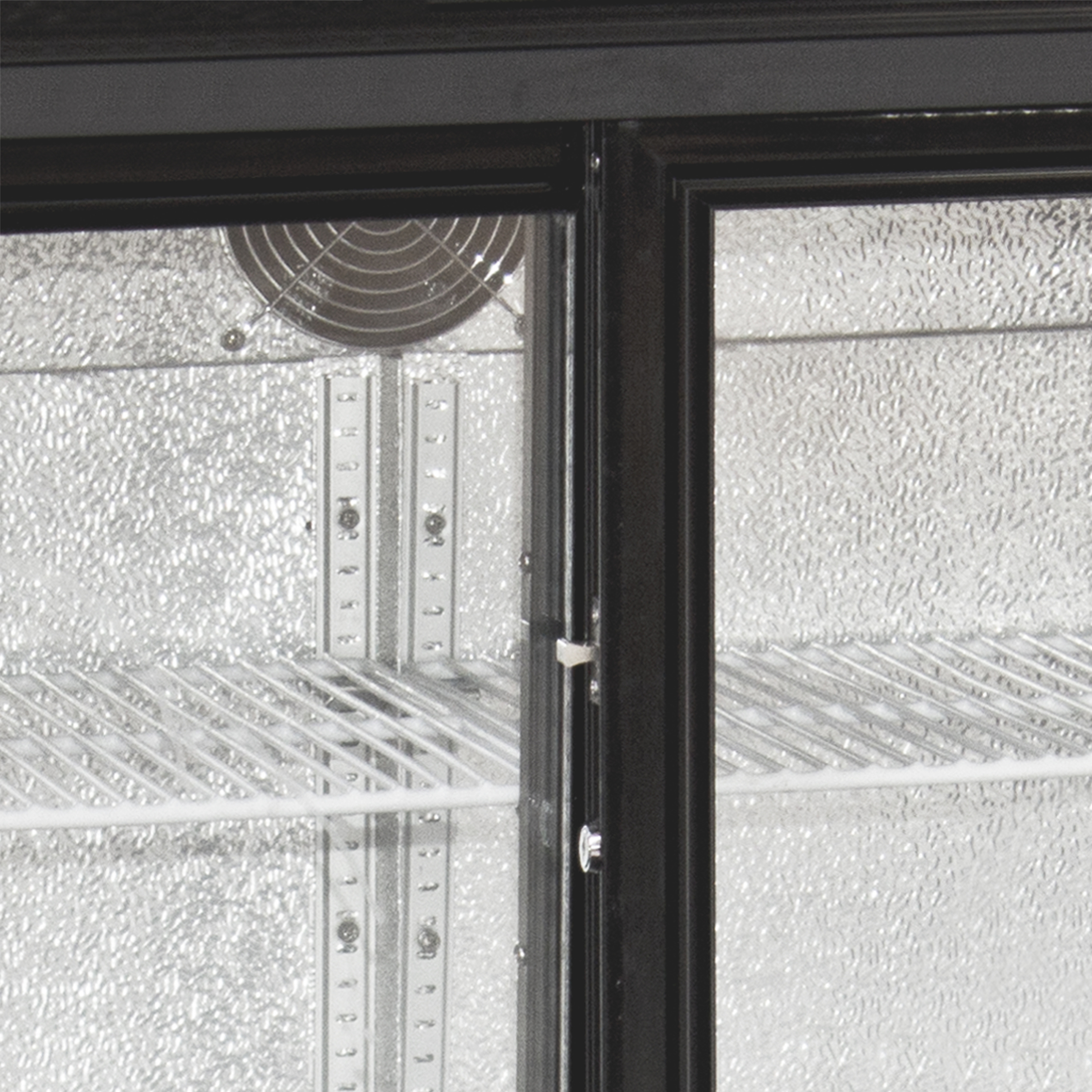 De DB-serie backbars wordt geleverd met 1, 2 of 3 deuren met dubbel gehard glas. Kies tussen schuifdeuren of draaideuren. De backbar heeft een zwarte buitenzijde, een stucco aluminium interieur en wit geplastificeerde draadplanken voor eenvoudig onderhoud. Met geventileerde koeling, eenvoudig te regelen met een elektronische thermostaat. Ideaal voor drukke baromgevingen.