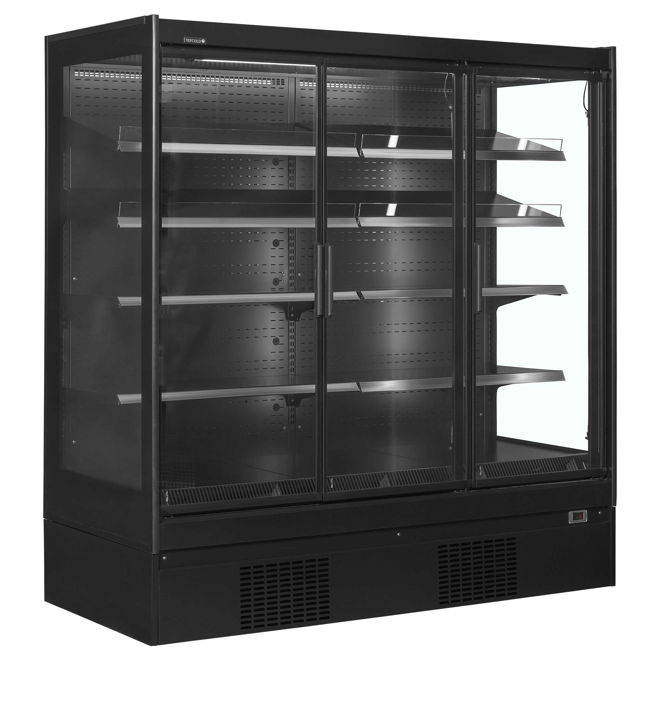 De FS BLACK-serie zwarte displaykoelers met 2 deuren biedt een uitstekende ontwerpkwaliteit tegen een concurrerende prijs. Het heeft een eigentijdse uitstraling met een zwart interieur en een zwarte buitenkant met zwarte glazen deuren met aluminium frame. De planken zijn verstelbaar, waardoor de FS-serie een flexibele oplossing is. Dit zorgt voor een geweldige productpresentatie in combinatie met een krachtig geventileerd koelsysteem dat wordt geregeld door een elektronische thermostaat. Veel modellen zijn ook verkrijgbaar met kap (FSC-serie).