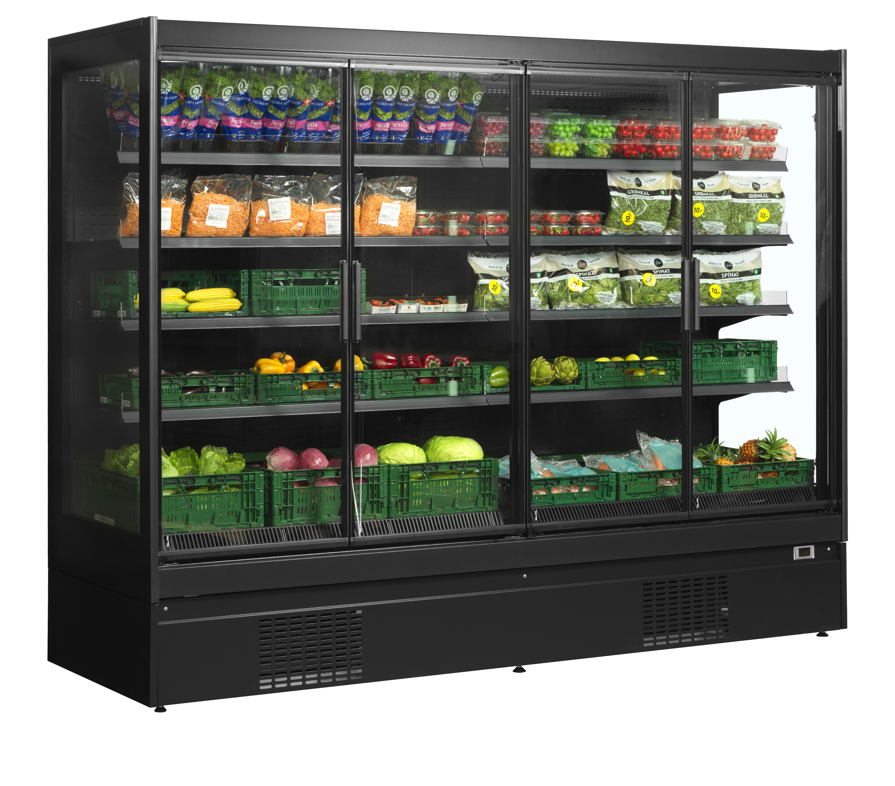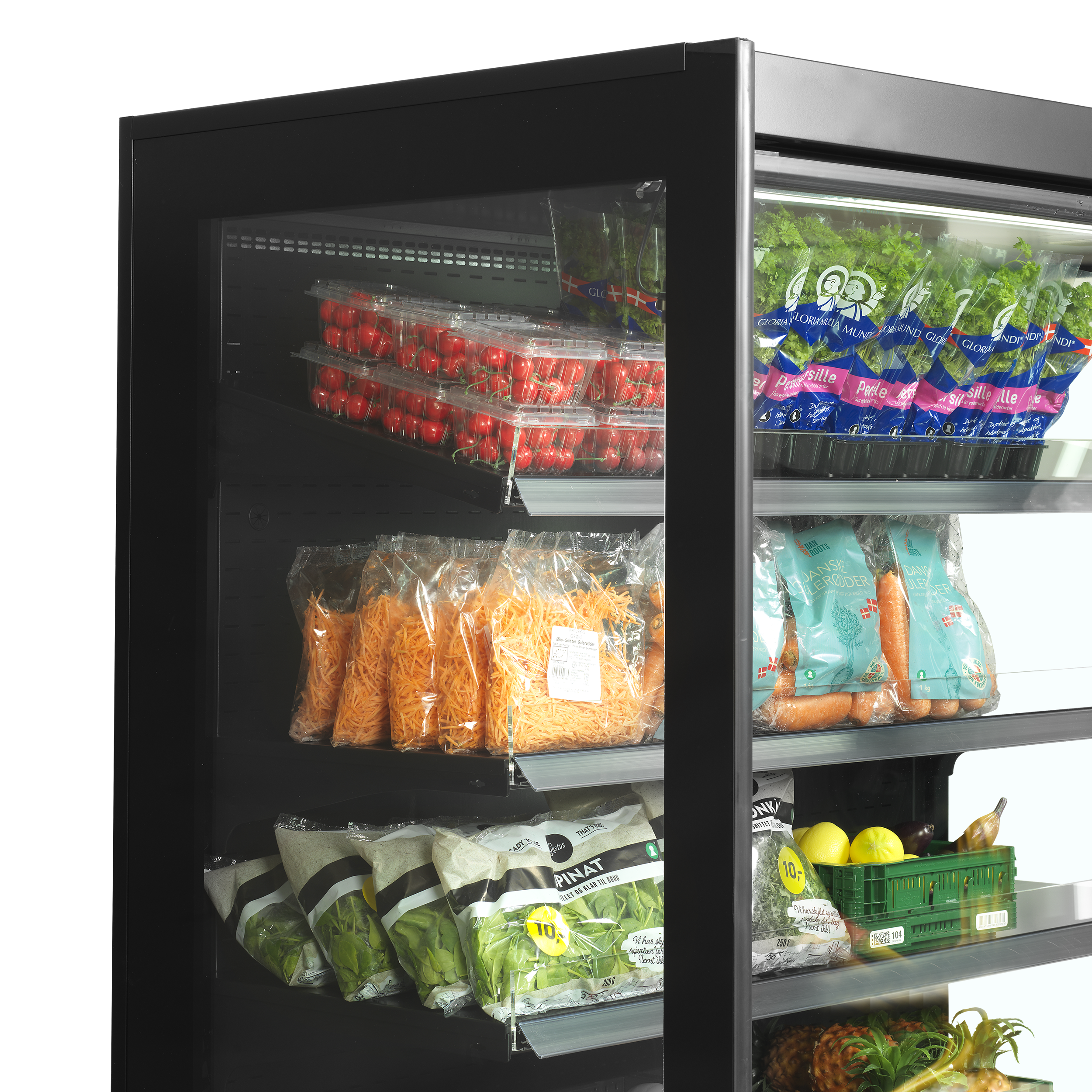 De EXTRA-serie multideckkoelers met deuren en extra diepe planken is perfect voor kruidenierswinkels en supermarkten. De koelers zijn verkrijgbaar in verschillende maten en bieden een geweldige productpresentatie met glazen deuren, glazen eindwanden en verstelbare planken met kantelfunctie. De EXTRA-modellen kunnen gecombineerd worden met een montageset zodat er ononderbroken lijnen in de winkel ontstaan. Ondanks het feit dat de kast ruim is, verbruikt hij weinig energie.