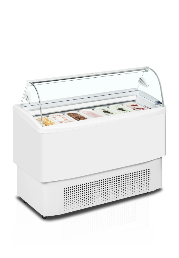 De Mirabella-serie schepijsvriezers is een sprong voorwaarts in design en productpresentatie. De schepijsvriezers presenteren het ijs hoog, zodat het van een afstand beter te zien is en klanten aantrekt en zijn uiteraard geschikt voor Napoli-bakken (niet inbegrepen), en onder het uitgestalde ijs is er een opbergvak voor het gemakkelijk bijvullen van het meest verkochte ijs.
