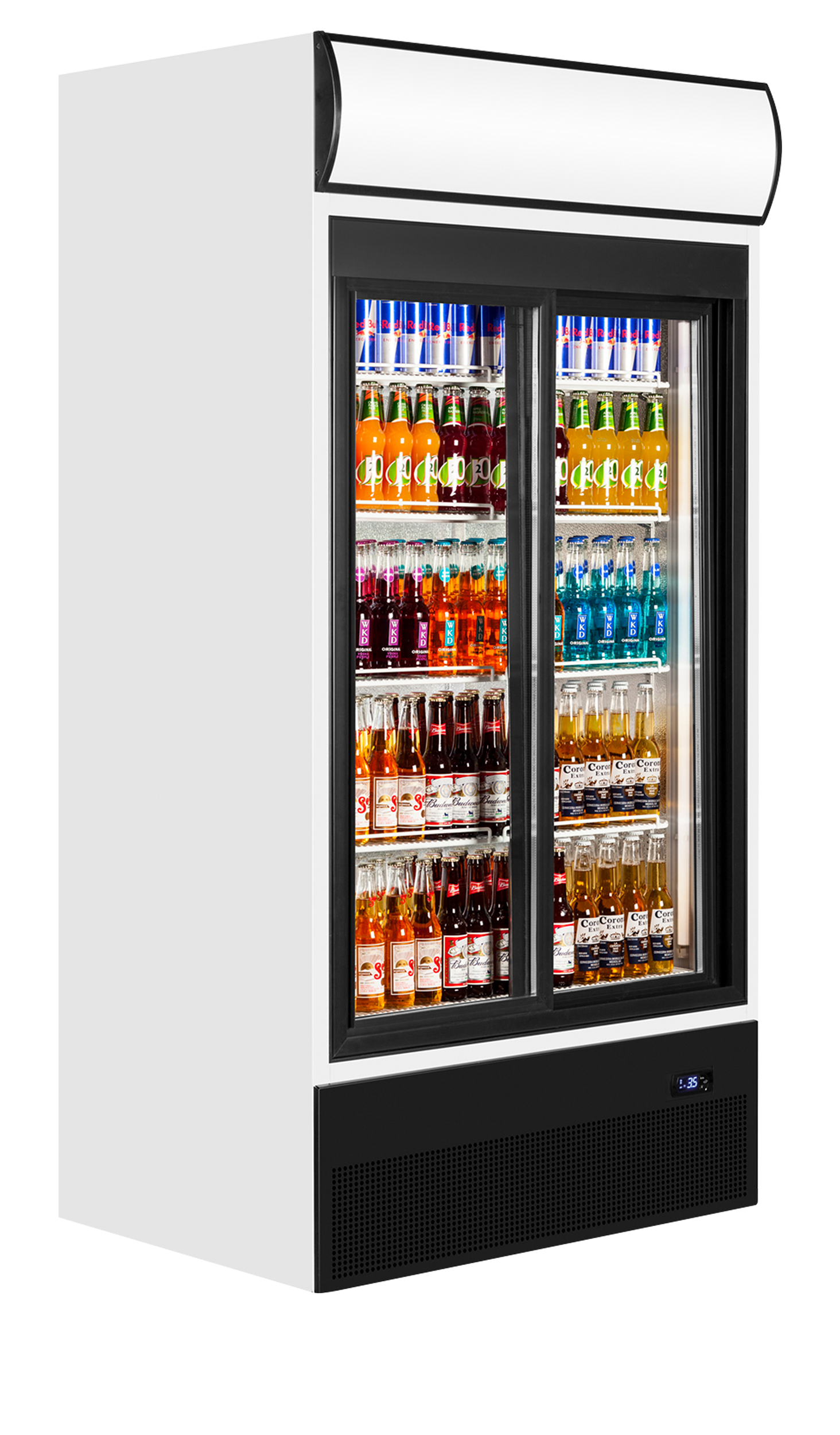 De SCU-serie flessenkoelers biedt veel display- en opslagruimte. Leverbaar in verschillende maten, met of zonder kap. Het is een witte kast met een zwarte omkeerbare glazen deur met aluminium frame, verstelbare planken en ledverlichting binnenin voor een optimale productpresentatie. Een koelsysteem met ventilator zorgt voor een gelijkmatige koeling van de hele kast.