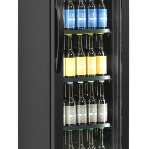 De SCU-serie flessenkoelers biedt veel display- en opslagruimte. Leverbaar in verschillende maten, met of zonder kap. Het is een witte kast met een zwarte glazen deur met aluminium frame, verstelbare legegrs en ledverlichting binnenin voor een optimale presentatie. Ventilatorkoeling zorgt voor een gelijkmatige koeling van de hele kast.