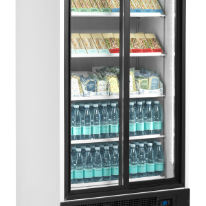 De Atom Maxi vriezerserie biedt uitstekende kwaliteit tegen een competitieve prijs. Leverbaar in 1, 2 of 3 zelfsluitende glazen deuren, LED-verlichting en verstelbare draadplanken voor een optimale presentatie van het product. Het heeft een efficiënt geventileerd koelsysteem, automatische ontdooiing en een eenvoudig te gebruiken temperatuurregelaar. Ook verkrijgbaar als koeler.
