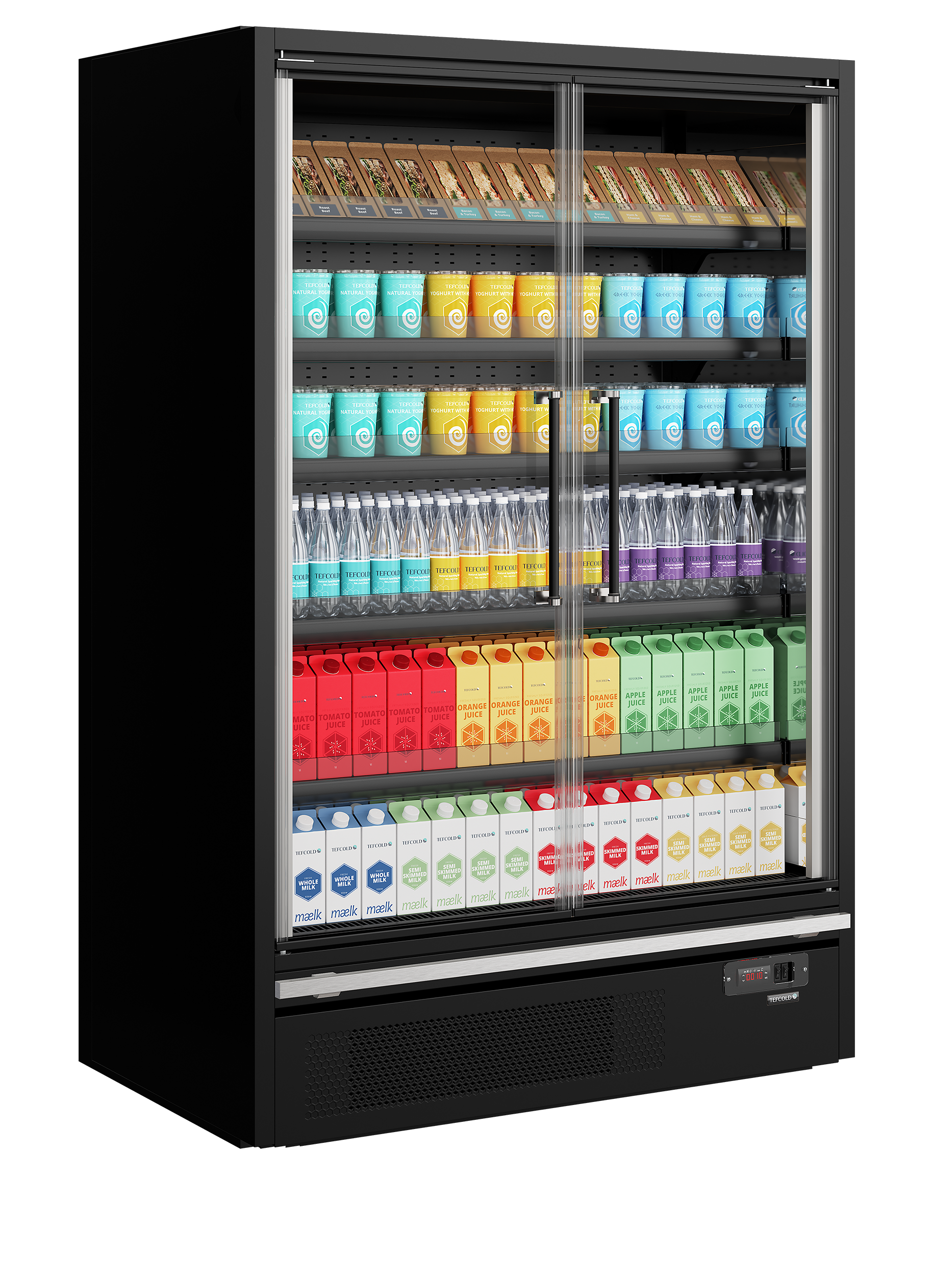 De EXTRA-serie multideckkoelers met deuren en extra diepe planken is perfect voor kruidenierswinkels en supermarkten. De koelers zijn verkrijgbaar in verschillende maten en bieden een geweldige productpresentatie met glazen deuren, glazen eindwanden en verstelbare planken met kantelfunctie. De EXTRA-modellen kunnen gecombineerd worden met een montageset zodat er ononderbroken lijnen in de winkel ontstaan. Ondanks het feit dat de kast ruim is, verbruikt hij weinig energie.