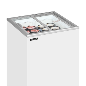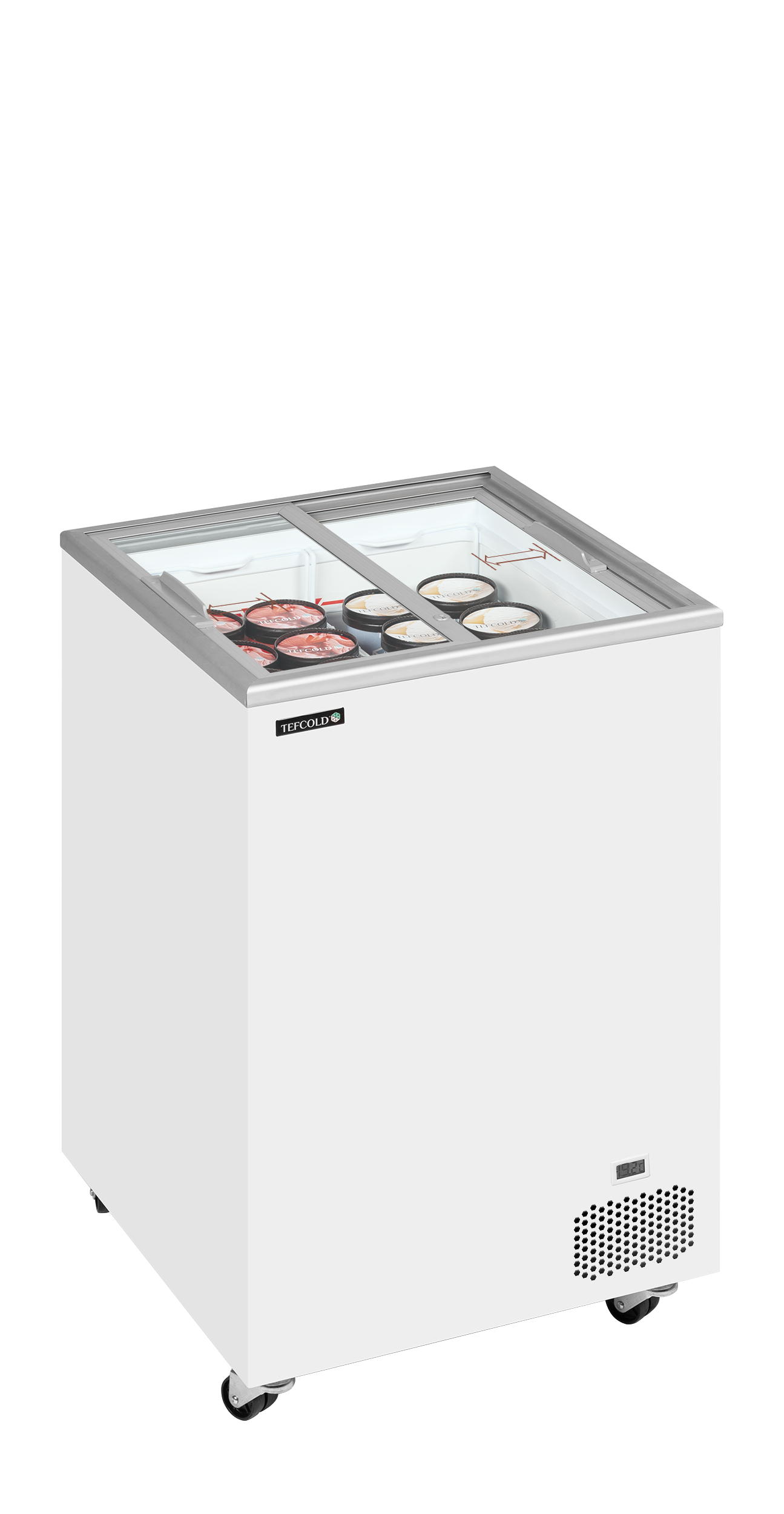De NIC-serie premium consumptie-ijsvriezers heeft een prachtig ontwerp met gebogen hoeken, afgeronde randen en platte glazen schuifdeksels. Ze zijn stabiel en robuust, maar hebben wel wieltjes voor een gemakkelijke verplaatsbaarheid in de winkel. De vriezer is geweldig voor het presenteren van diepvriesproducten zoals ijs en ijslolly’s. Inclusief een complete set manden.