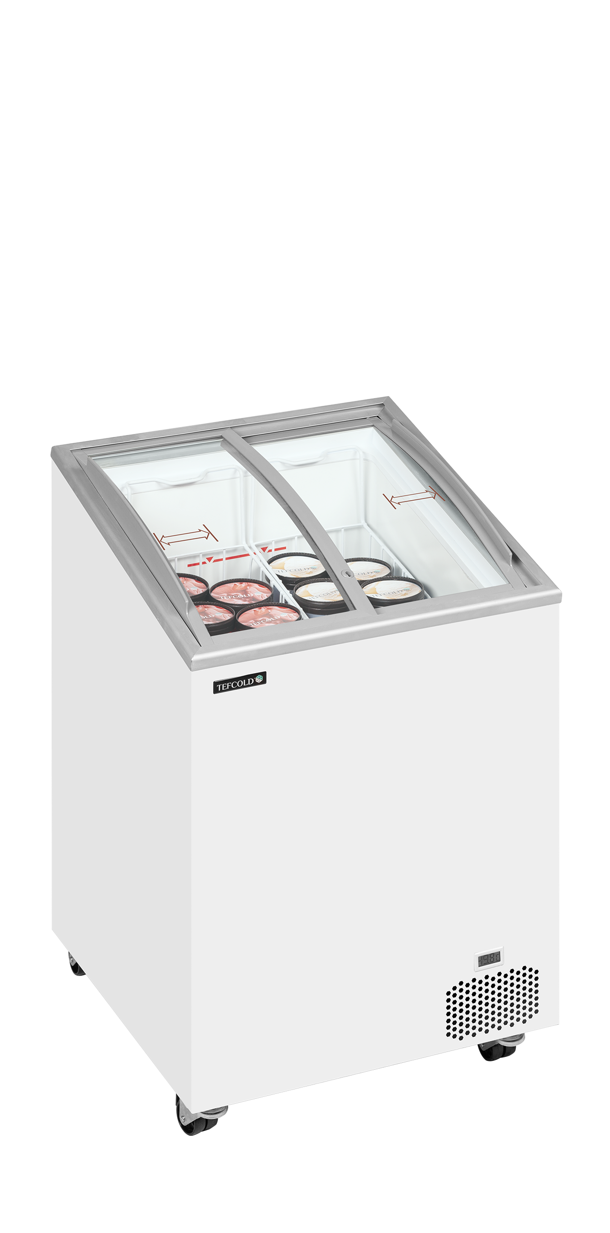 De NIC-serie premium consumptie-ijsvriezers heeft een prachtig ontwerp met gebogen hoeken, afgeronde randen en platte glazen schuifdeksels. Ze zijn stabiel en robuust, maar hebben wel wieltjes voor een gemakkelijke verplaatsbaarheid in de winkel. De vriezer is geweldig voor het presenteren van diepvriesproducten zoals ijs en ijslolly’s. Inclusief een complete set manden.
