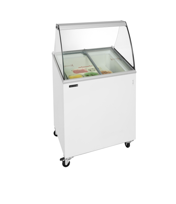 Bij de Bermuda View-serie gaat het vooral om het presenteren van het consumptie-ijs. Daarom is het frontglas lager voor een betere zichtbaarheid. De Bermuda-serie is verkrijgbaar in twee formaten, voor 10 of 13 bakken. De kast is uitgerust met een geventileerd koelsysteem dat ervoor zorgt dat uw ijs of gelato op de ideale serveertemperatuur blijft. Bovendien beschikt de eenheid over een aparte gekoelde onderopslag. Het slanke gebogen glasontwerp van de Bermuda is zowel elegant als praktisch, met een verwarmd oppervlak om condensatie te voorkomen. Met zijn aantrekkelijke combinatie van kwaliteit en betaalbaarheid is het een populaire keuze voor ijs- enā¦