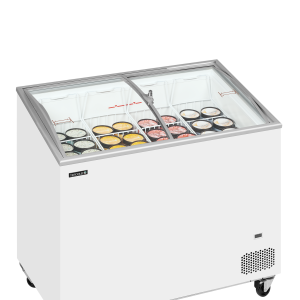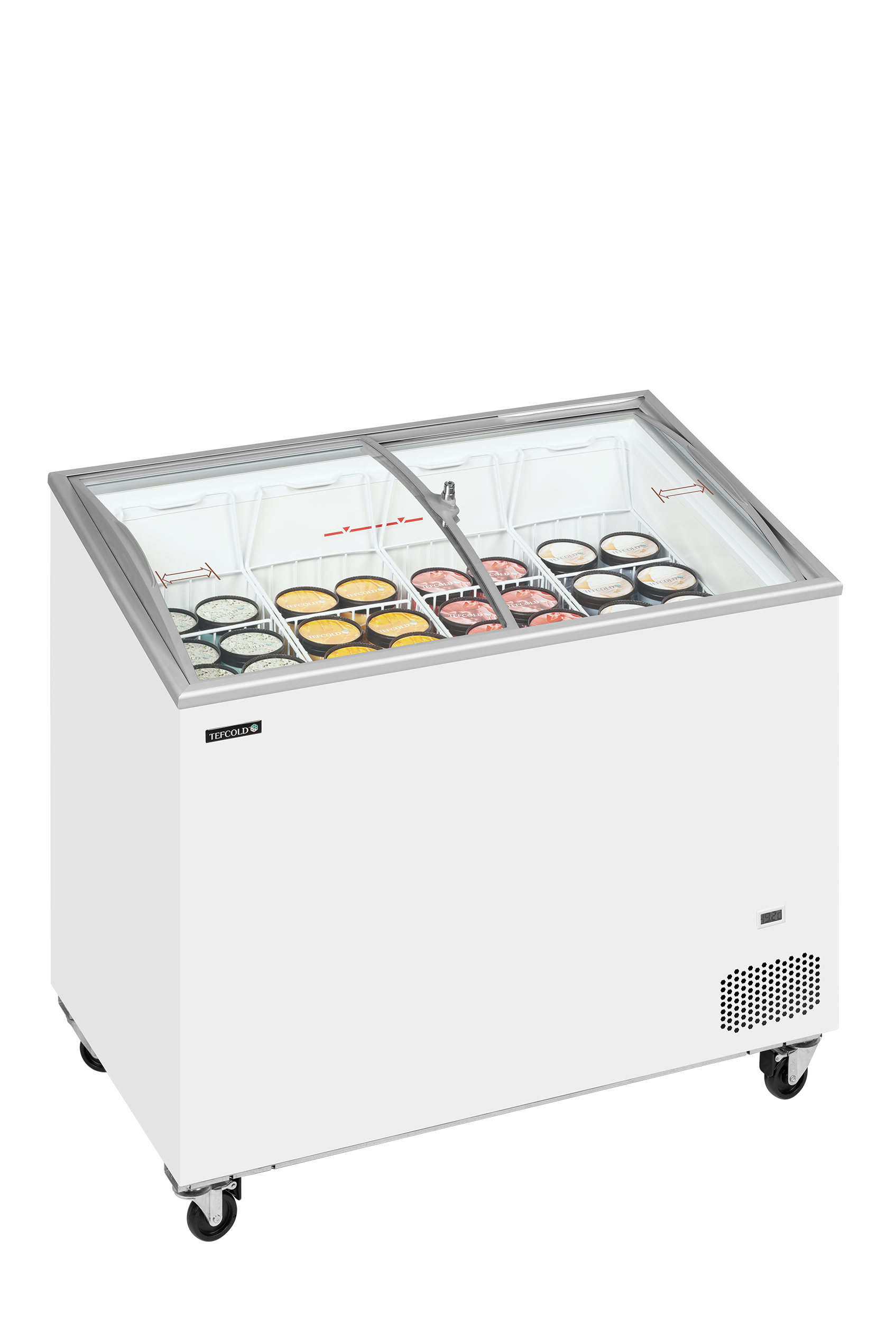 De standaard IC-SCEB-serie consumptie-ijsvriezers heeft een stabiele en solide constructie tegen een concurrerende prijs. Het is een geweldige optie voor startende bedrijven, seizoensverkoop enz. De vriezer wordt geleverd met gebogen glazen schuifdeksels voor goede zichtbaarheid van het product en een complete set manden, klaar om te worden gevuld met heerlijk ijs en ijslolly's. Er zijn stevige zware zwenkwielen aangebracht om de eenheid gemakkelijk te kunnen verplaatsen.