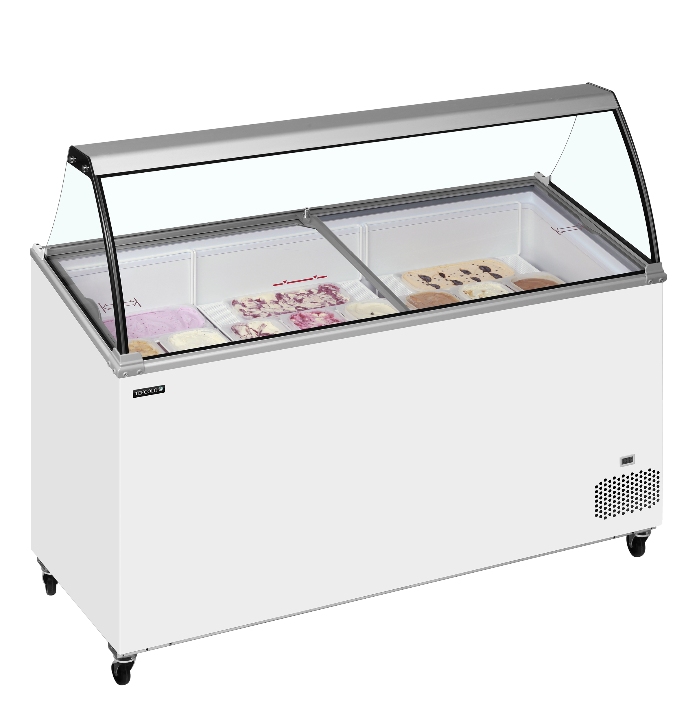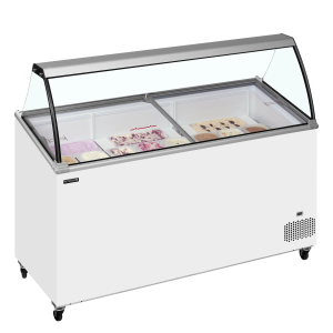 De Mirabella-serie schepijsvriezers is een sprong voorwaarts in design en productpresentatie. De schepijsvriezers presenteren het ijs hoog, zodat het van een afstand beter te zien is en klanten aantrekt en zijn uiteraard geschikt voor Napoli-bakken (niet inbegrepen), en onder het uitgestalde ijs is er een opbergvak voor het gemakkelijk bijvullen van het meest verkochte ijs.