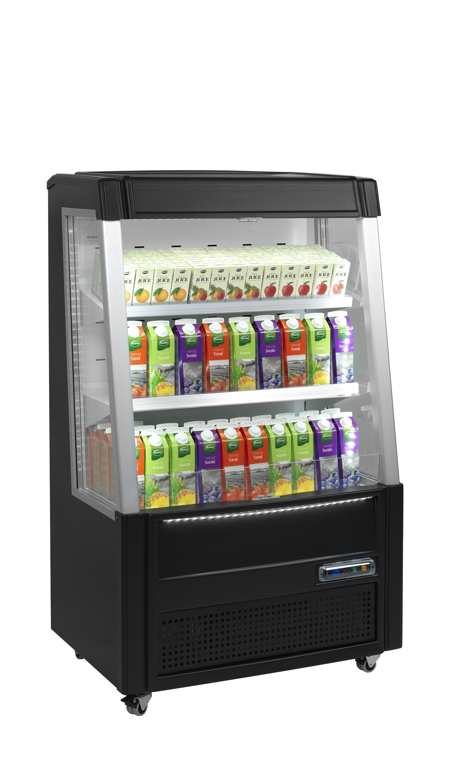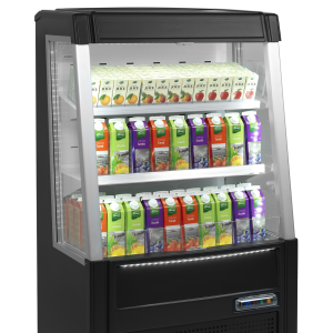 The ODC range of low open display coolers is perfect for stimulating impulse purchases. It is available in two sizes with a black or white interior. Exterior is black for all. All models are equipped with an effective ventilated cooling system to ensure an even and stable temperature throughout the unit. Complete with LED lighting and adjustable shelves with a tilting function to provide the best possible product presentation.