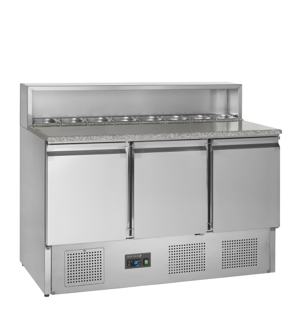 De PT-serie pizzatafels zijn gemaakt van roestvast staal SS304. Het granieten tafelblad is ideaal is voor het maken van pizza's, omdat het graniet koel blijft en het deeg moeilijker aan het tafelblad blijft plakken. Leverbaar in diverse afmetingen met 2 of 3 deuren. Ook leverbaar op verzoek met laden. Wordt geleverd met of zonder opzetstuk voor GN-structuur- opzetstukken kunnen achteraf worden gemonteerd.