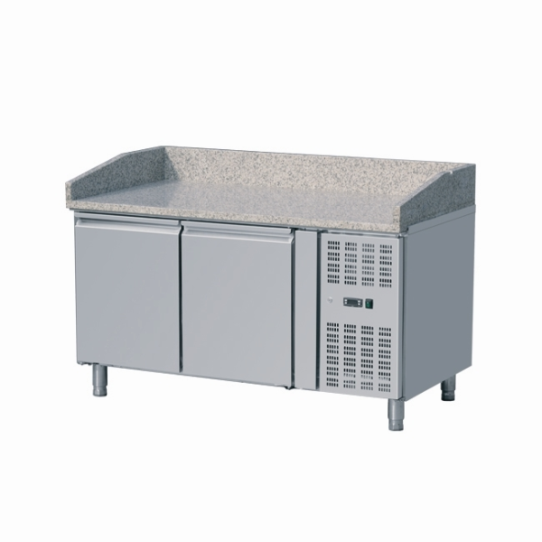 De PT-serie pizzatafels zijn gemaakt van roestvast staal SS304. Het granieten tafelblad is ideaal is voor het maken van pizza's, omdat het graniet koel blijft en het deeg moeilijker aan het tafelblad blijft plakken. Leverbaar in diverse afmetingen met 2 of 3 deuren. Ook leverbaar op verzoek met laden. Wordt geleverd met of zonder opzetstuk voor GN-structuur- opzetstukken kunnen achteraf worden gemonteerd.