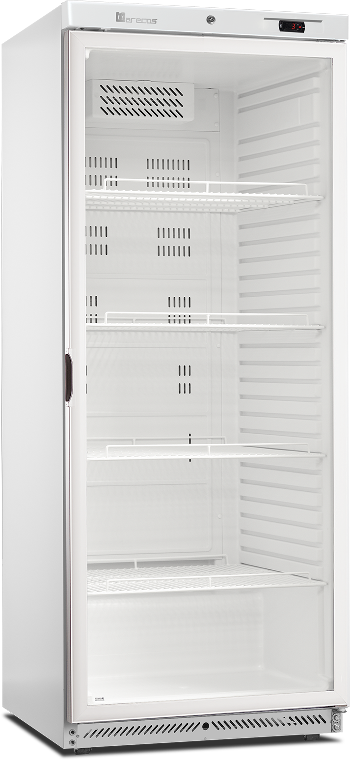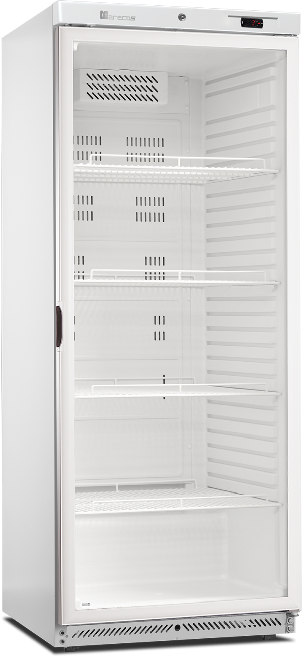 De SCU-serie flessenkoelers biedt veel display- en opslagruimte. Leverbaar in verschillende maten, met of zonder kap. Het is een witte kast met een zwarte omkeerbare glazen deur met aluminium frame, verstelbare planken en ledverlichting binnenin voor een optimale productpresentatie. Een koelsysteem met ventilator zorgt voor een gelijkmatige koeling van de hele kast.