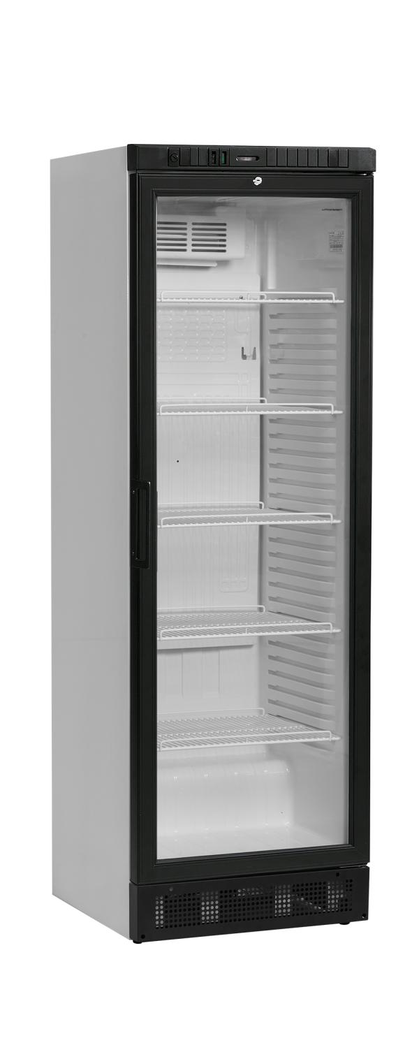 De SCU-serie flessenkoelers biedt veel display- en opslagruimte. Leverbaar in verschillende maten, met of zonder kap. Het is een witte kast met een zwarte glazen deur met aluminium frame, verstelbare legegrs en ledverlichting binnenin voor een optimale presentatie. Ventilatorkoeling zorgt voor een gelijkmatige koeling van de hele kast.