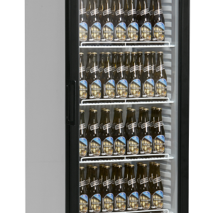 De FSC-serie flessenkoelers met 1 deur biedt een uitstekende ontwerpkwaliteit tegen een concurrerende prijs. De kast is wit met een grijze glazen deur met aluminium frame. Ideaal voor branding en de verlichte kap bovenaan trekt zeker de aandacht van de klanten. Dit zorgt voor een geweldige productpresentatie in combinatie met een krachtig door ventilator ondersteund koelsysteem, en de verstelbare planken zorgen voor extra flexibiliteit. Veel modellen zijn ook verkrijgbaar zonder kap (FS-serie).