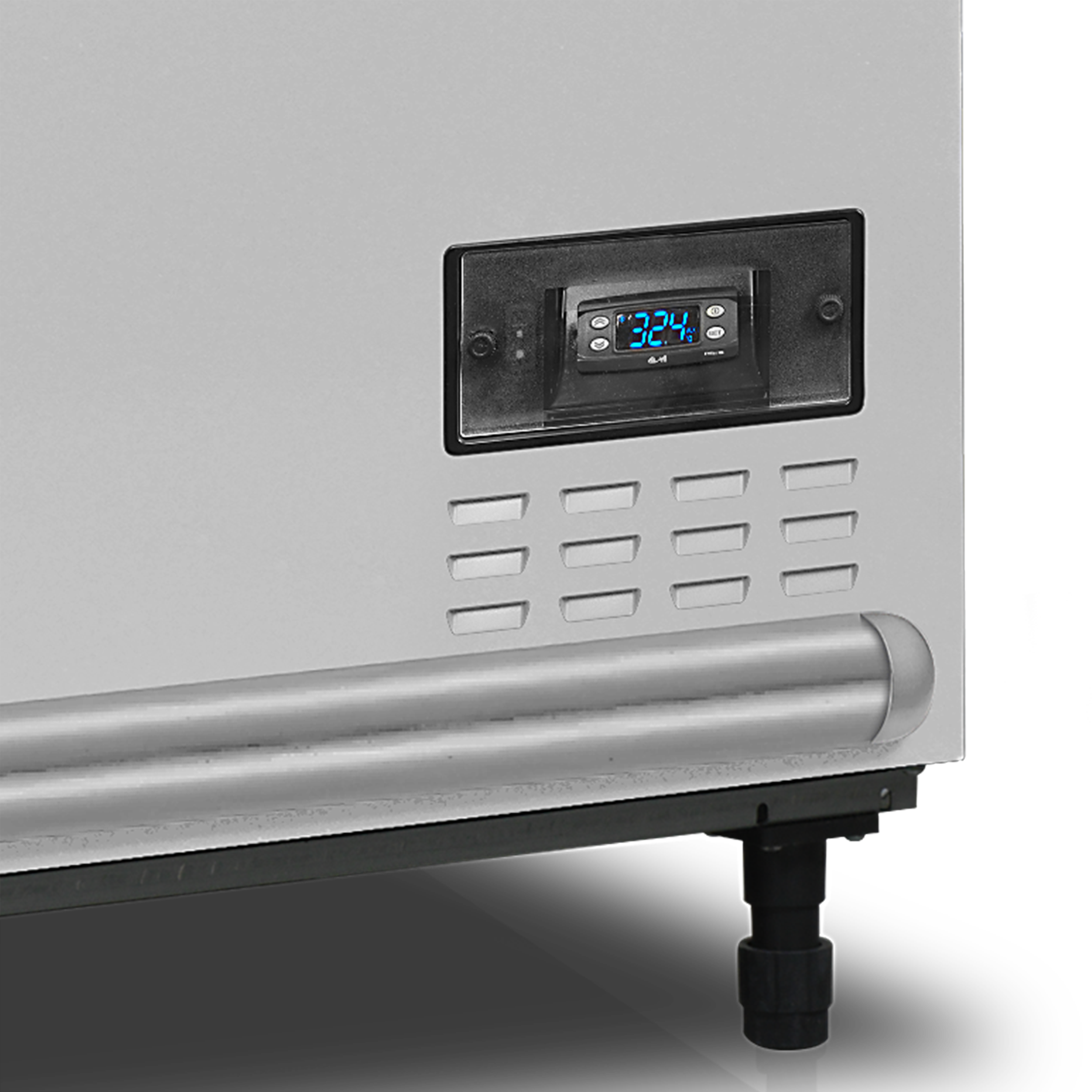 De SFI-CF-serie supermarktkoel-/vrieskisten is verkrijgbaar in diverse kleuren en biedt dankzij de gebogen glazen schuifdeksels goed zicht op de producten binnenin. De inhoud wordt verlicht door ledverlichting op de achterwand van de vriezer. Verstelbare valse bodems tussen de afscheidingen maken het mogelijk de hoogte van de bodem in de kast te verhogen, zodat deze er altijd volledig gevuld uitziet. Perfect voor supermarkten, kruidenierswinkels, slagers enz.