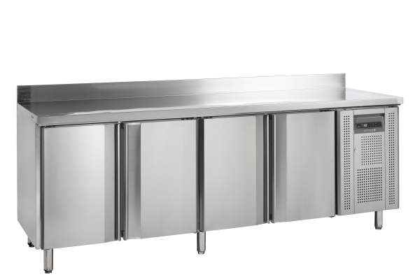 The SK range of snack counter coolers is made in SS304 stainless steel. The term “snack” is used for gastro products, which do not have gastronorm dimensions. The snack counters have a depth of only 600 mm which makes them ideal for kitchens with limited space. Available in several sizes from 2-4 doors and in models with a removable tabletop with or without a splashback. They all have ventilated cooling to ensure an even and steady temperature. Also available in a freezer option (SK-BT range)