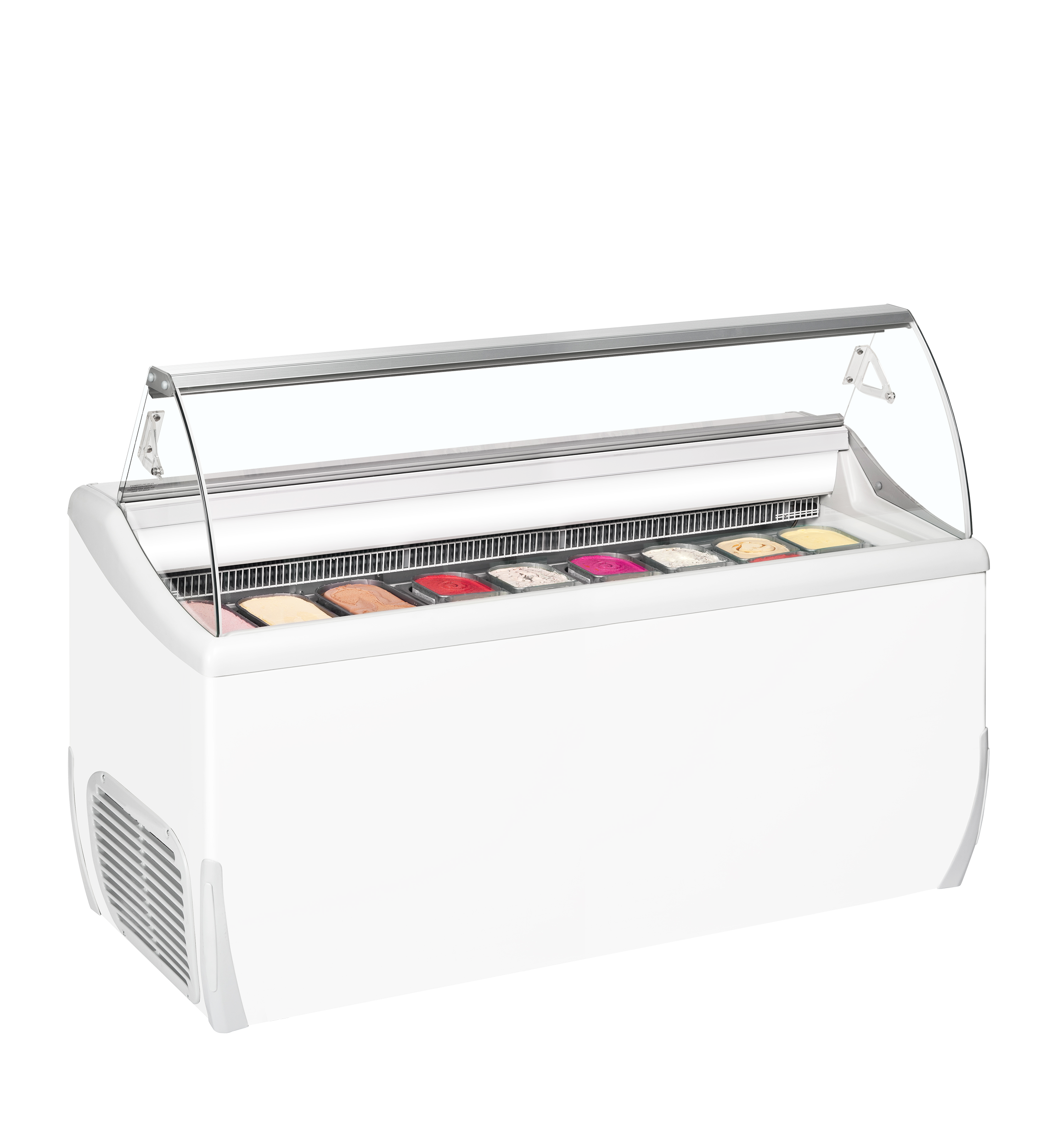 De Mirabella-serie schepijsvriezers is een sprong voorwaarts in design en productpresentatie. De schepijsvriezers presenteren het ijs hoog, zodat het van een afstand beter te zien is en klanten aantrekt en zijn uiteraard geschikt voor Napoli-bakken (niet inbegrepen), en onder het uitgestalde ijs is er een opbergvak voor het gemakkelijk bijvullen van het meest verkochte ijs.