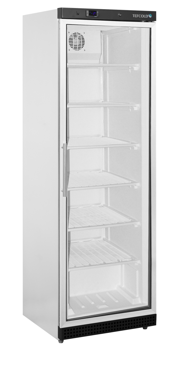De UF-VG-serie displayvriezers is de geventileerde versie van onze witte vriezers met glazen deur. Hij is verkrijgbaar in verschillende maten. Het geventileerd koelsysteem zorgt voor een gelijkmatige temperatuur in de hele kast. De temperatuur kan worden ingesteld op een gebruiksvriendelijk digitaal thermostaatdisplay.