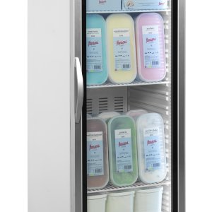 De UF-VG-serie displayvriezers is de geventileerde versie van onze witte vriezers met glazen deur. Hij is verkrijgbaar in verschillende maten. Het geventileerd koelsysteem zorgt voor een gelijkmatige temperatuur in de hele kast. De temperatuur kan worden ingesteld op een gebruiksvriendelijk digitaal thermostaatdisplay.