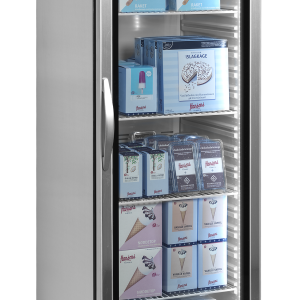 De UF-VSG-serie displayvriezers is de geventileerde versie van onze roestvast stalen vriezers met glazen deur. Hij is verkrijgbaar in verschillende maten en biedt grote flexibiliteit met verstelbare planken. Het effectieve geventileerd koelsysteem zorgt voor een gelijkmatige temperatuur in de hele kast. De temperatuur kan worden ingesteld op een gebruiksvriendelijk digitaal thermostaatdisplay. Ontdooien gaat automatisch.