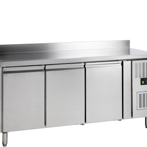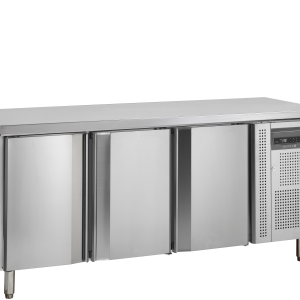 The SK range of snack counter coolers is made in SS304 stainless steel. The term “snack” is used for gastro products, which do not have gastronorm dimensions. The snack counters have a depth of only 600 mm which makes them ideal for kitchens with limited space. Available in several sizes from 2-4 doors and in models with a removable tabletop with or without a splashback. They all have ventilated cooling to ensure an even and steady temperature. Also available in a freezer option (SK-BT range)