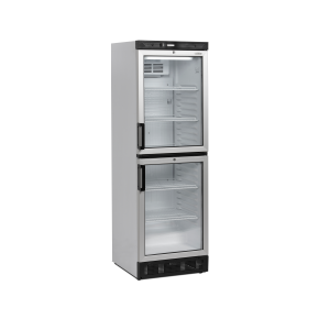 De FS-serie flessenkoelers biedt een uitstekende ontwerpkwaliteit tegen een concurrerende prijs. De kast is wit met twee grijze glazen deuren met aluminium frame. Dit zorgt voor een geweldige productpresentatie in combinatie met een krachtig door ventilator ondersteund koelsysteem, en de verstelbare planken zorgen voor extra flexibiliteit. Veel modellen zijn ook verkrijgbaar met kap (FSC-serie).